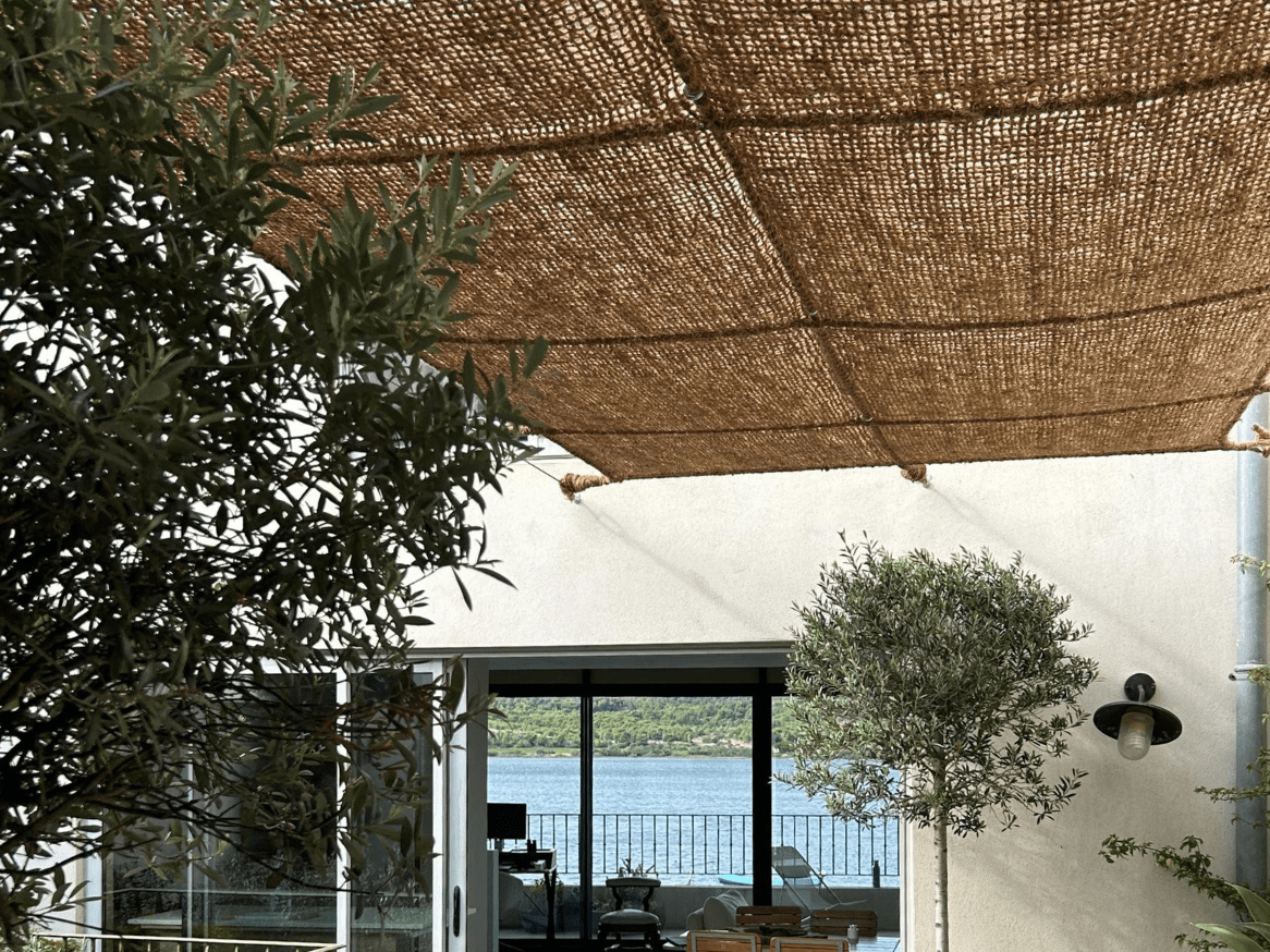 Shade sail in coconut fibre to hang in a grid – Model C